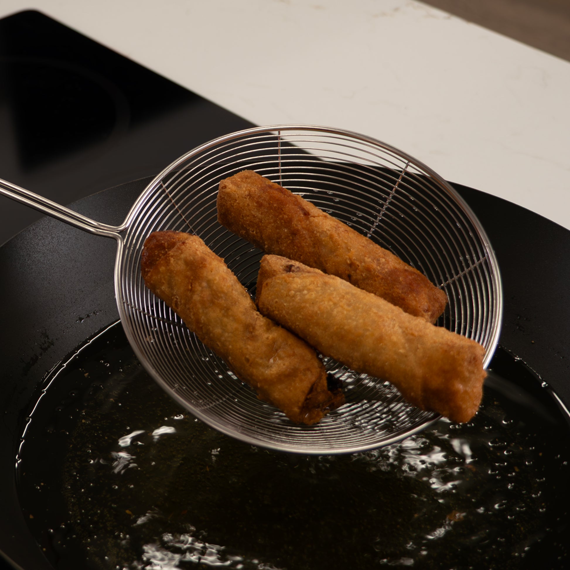 The Joyce Chen 7-Inch Deluxe Stainless Steel Spider Strainer is a must-have for home cooks and culinary enthusiasts alike, especially when preparing Asian-inspired dishes. Its finely crafted wire basket makes it easy to lift egg rolls, dumplings, vegetables, and more from hot oil or boiling water with control and precision.