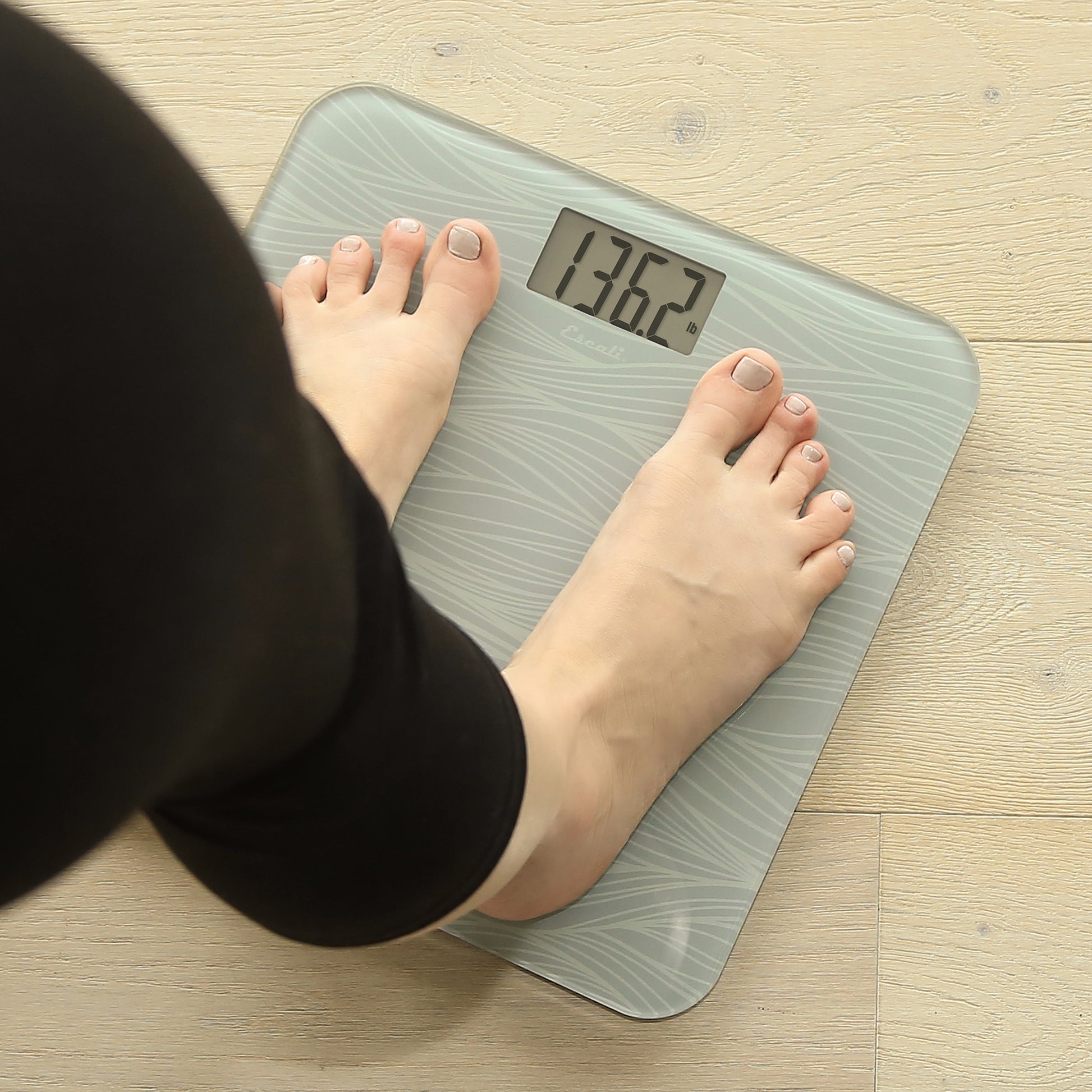 The Escali B180SG Glass Waves Body Scale features an impact-resistant safety-glass platform, rounded edges for increased durability and a low center of gravity for better stability.