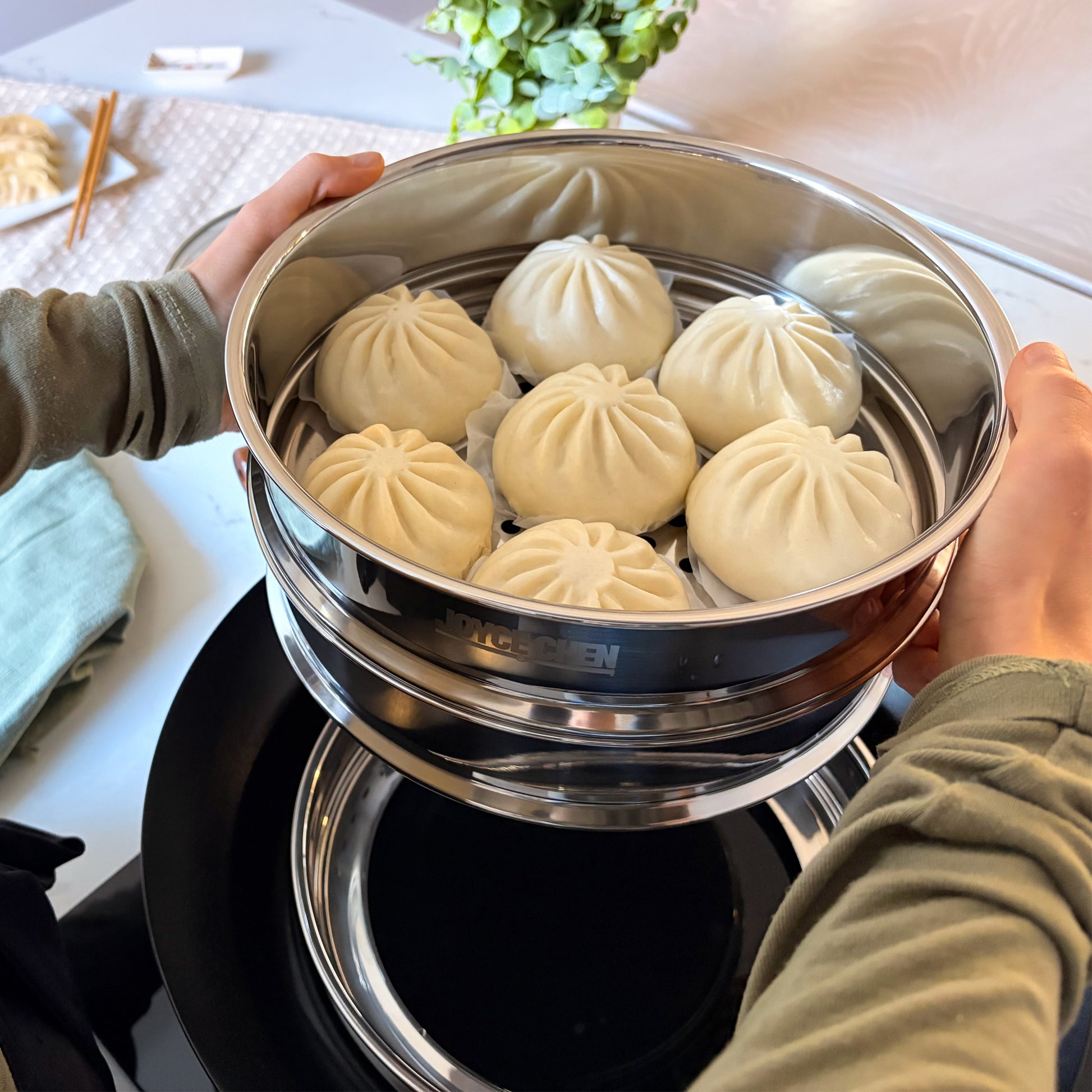 The Joyce Chen 10-inch Stainless Steel Steamer is the perfect companion to your favorite wok. Steaming is a time-tested and delicious way to prepare food, and this steamer makes it effortless—delivering perfectly cooked dumplings, vegetables, fish, and more. Its two-tier design lets you cook multiple dishes at once, streamlining meal prep. Just place the steamer and adapter ring in a pan with a shallow layer of water, heat, and you’re ready to cook. Crafted from premium 304 stainless steel, it’s durable, dishwasher safe, and built to last a lifetime. Whether you’re making a quick batch of dim sum or preparing healthy family meals, the Joyce Chen 10-inch Stainless Steel Steamer will quickly become a staple in your kitchen.