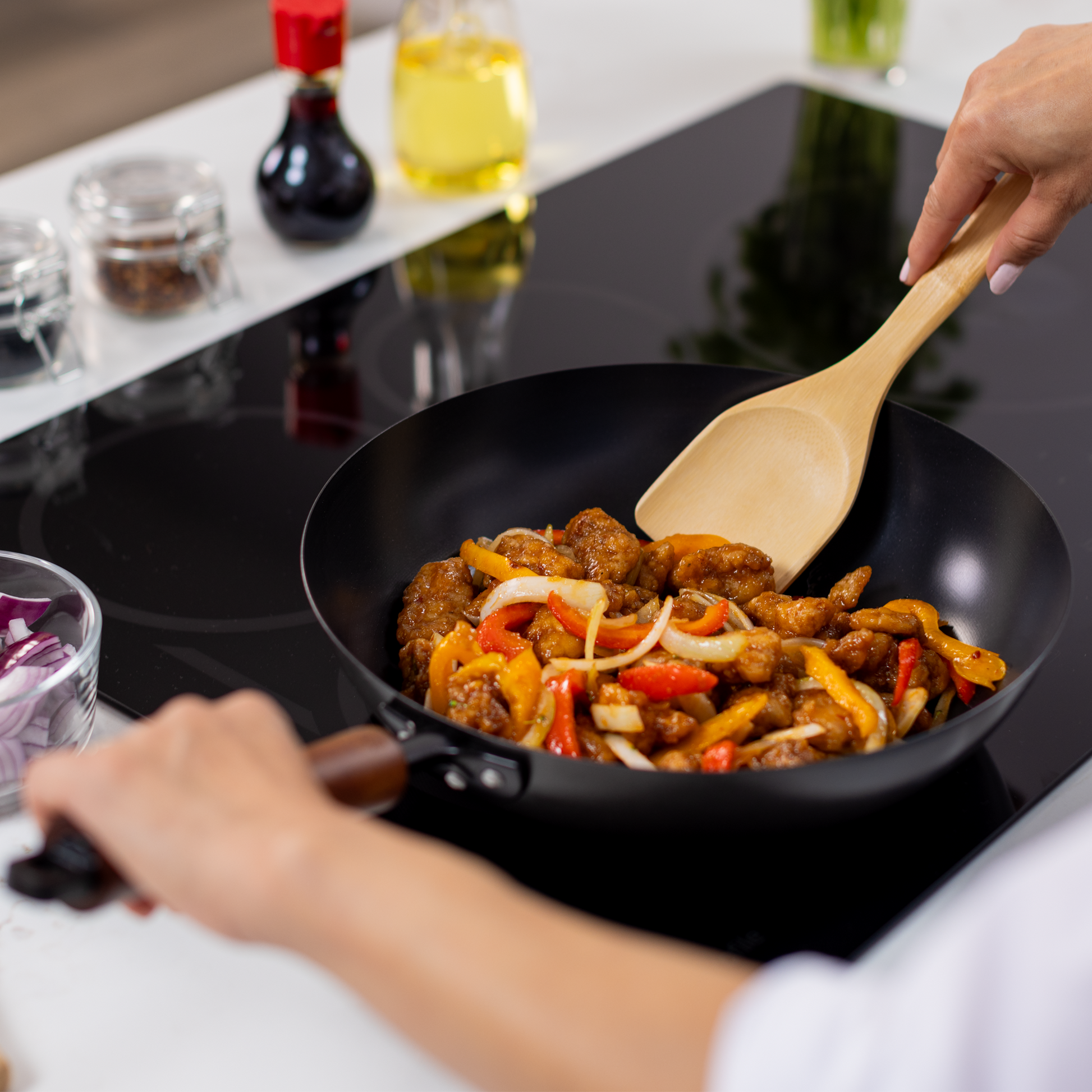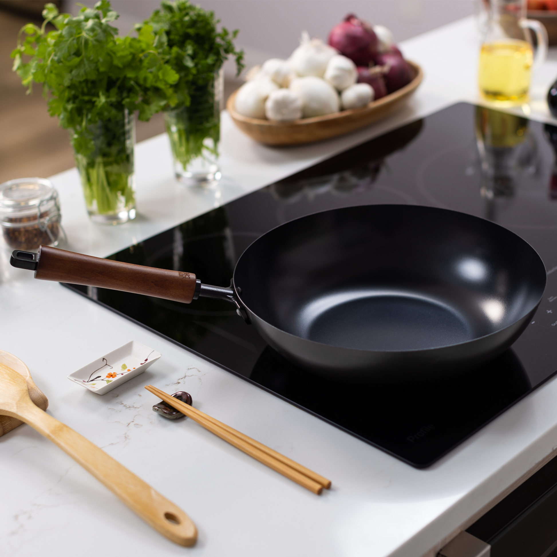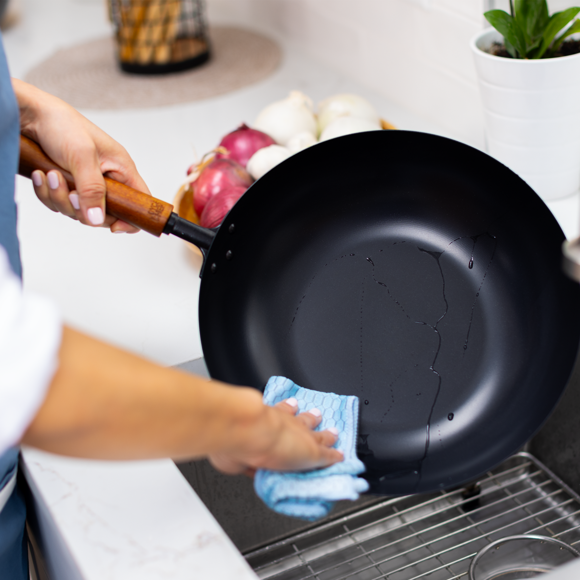 - 1.5mm gauge carbon steel heats quickly and is perfect for searing, stir-fry, sautéing, and more.
