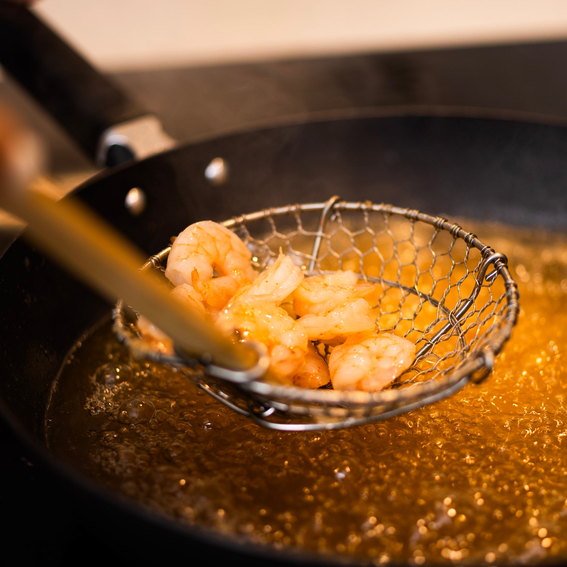 - Spider strainer is perfect for gently removing food from hot oil or water