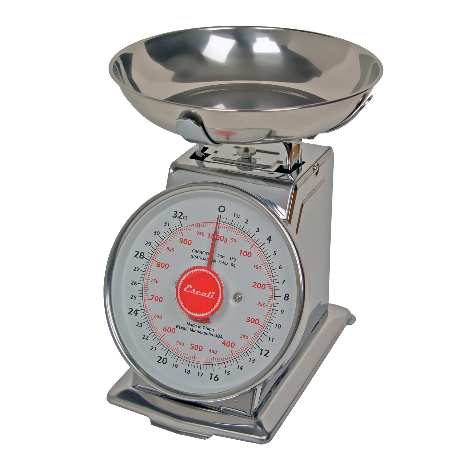 The Mechanical Dial Scale (2 lb capacity) feature accurate measuring in an environment where a digital scale is not essential. This durable spring scale has a metal frame, easy to read dial display and stainless steel bowl.